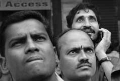 Shellshocked: Investors stare at the figures on the Bombay Stock Exchange building in Mumbai as the sensex crashed on Wednesday morning.